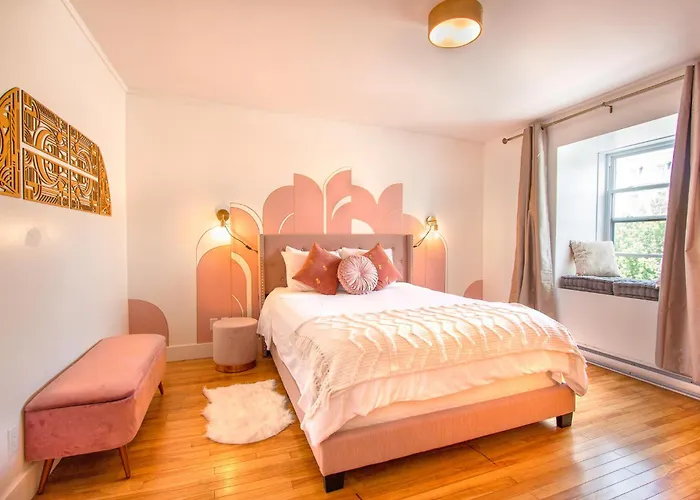 The 84 m² Gatsby - Selfcheckin - Rooftop - Terraces - St-Denis apartment offers easy access to such tourist sites as Crystal Dreams St-Denis Metaphysical Supply Store, located approximately a 5-minute walk away. This 1-bedroom apartment also has a patio overlooking the city.